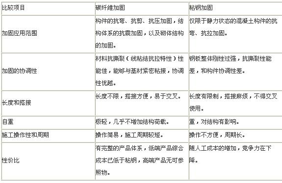 3、碳纖維布與粘鋼技術(shù)的比較