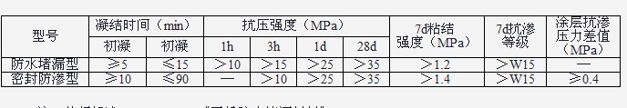 分為防水堵漏型和密封防滲型兩種型號(hào);