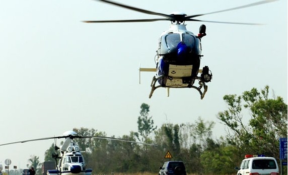 省公安廳同時派出2架警用直升機在目標區域上空執勤,進行空中管控,負責執行探照追蹤、高音喊話、空中警戒、航拍取證、快速用兵、緊急救援等任務。路面上,對相關路段和重點部位實施交通管制,形成海陸空全方位立體防控網。
