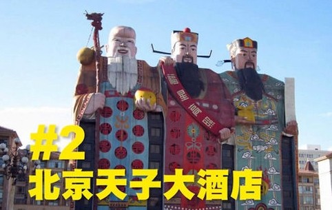 2、北京天子大酒店。自飯店蓋好后,站在路邊的福祿壽三仙就多次被選為最丑建筑,不過祂們應該很開心人民日報大樓的誕生,終于把冠軍寶座讓出。