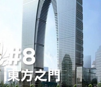 8、東方之門。盡管開發(fā)商表示,建筑設計概念是來自于蘇州的水陸城門,不過郝毅博說,這根本就是一件站在空中的大褲子嘛!