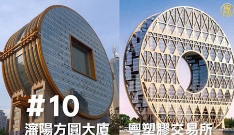 0、沈陽的方圓大廈和廣東塑膠交易所。這個靈感來自于中國的銅錢,不過外國人看到應該是會想到警察最愛吃的甜甜圈。