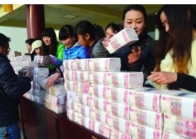 2014年1月15日 四川加固公司 四川涼山州冕寧縣復興鎮建設村召開 2013年分紅大會,分紅金額達1311.5萬元。現場,重達312斤的人民幣現金一捆捆整齊地放在臺上,340余戶入股村民排隊領錢,最多的一戶領到了30萬元,最少的也有近萬元,數錢數到手都軟了。村上分紅金額最多的,是村民金鷗,他領到了30萬元!疤炖,數了半天,手都數軟了,都還沒有數清楚。”把錢放進袋子里,金鷗甩著手說。