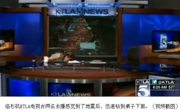 洛杉磯4.4地震直播室美女主播驚恐萬分鉆桌子