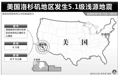 當地時間28日晚,美國加利福尼亞州洛杉磯地區發生5.1級地震,目前尚無地震造成破壞和人員傷亡的消息傳出。美國地質勘探局稱,此次地震發生于當地時間28日晚9點零9分,震中位于拉哈布拉市東部2公里處,震源深度1.9公里。此次地震發生一小時前,相同地區曾發生3.6級地震。地震發生后,附近地區發生5次輕度余震。目前,尚無地震造成破壞和人員傷亡的消息傳出。在美國南加州拉哈布拉附近,28日當晚發生5.1級淺源地震,洛杉磯地區震感明顯,索性損失不大,但依舊令不少美國人膽顫心驚!