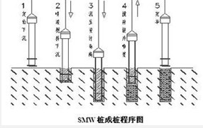 SMW工法的特點 SMW工法型鋼水泥土攪拌墻,是以多軸型鉆掘攪拌機在原位地層向一定深度進行鉆掘,同時在鉆頭處噴出水泥系強化劑而與地基土反復混合攪拌,在各施工單元之間則采取重疊搭接施工,然后在水泥土混合體未結硬前插入H 型鋼或鋼板作為其應力補強材,至水泥結硬,便形成一道具有一定強度和剛度的、連續完整的、無接縫的地下墻體。