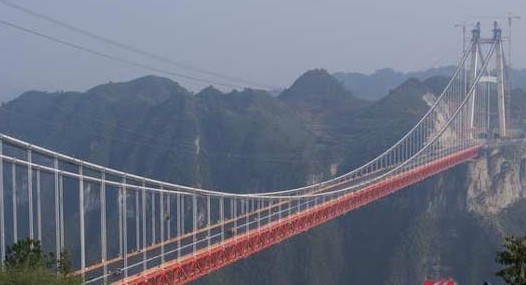 懸索橋是以通過索塔懸掛并錨固于兩岸的纜索作為上部結構主要承重構件的橋梁。其纜索幾何形狀由力的平衡條件決定,一般接近拋物線。從纜索垂下許多吊桿,把橋面吊住,在橋面和吊桿之間常設置加勁梁,同纜索形成組合體系,以減小活載所引起的撓度變形.懸索橋是以承受拉力的纜索或鏈索作為主要承重構件的橋梁,由懸索、索塔、錨碇、吊桿、橋面系等部分組成。懸索橋的主要承重構件是懸索,它主要承受拉力,一般用抗拉強度高的鋼材(鋼絲、鋼纜等)制作。由于懸索橋可以充分利用材料的強度,并具有用料省、自重輕的特點,因此懸索橋在各種體系橋梁中的跨越能力最大,跨徑可以達到1000米以上。