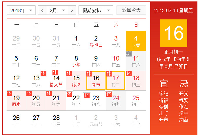 為更方便客戶業務聯絡,本公司2018年的春節放假安排如下: